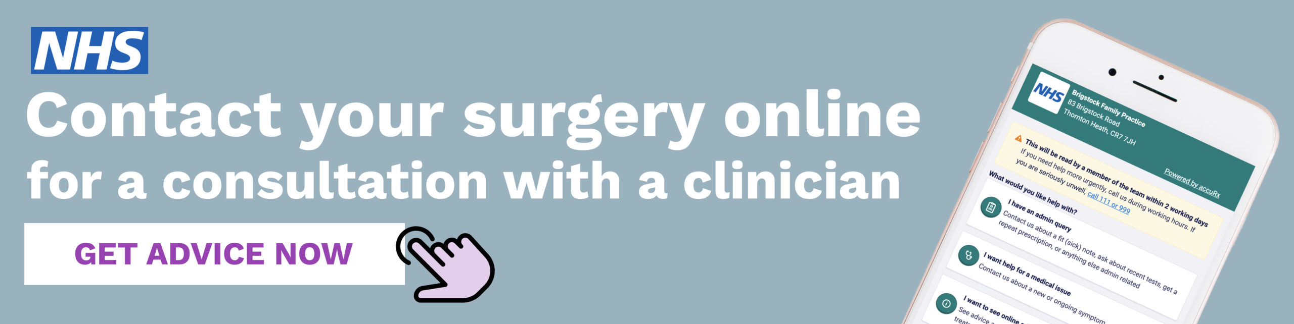 Contact your surgery online for a consultation – click the image above